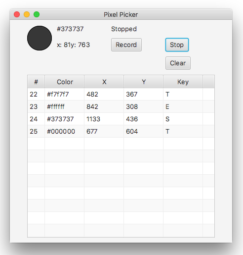 A cross-platform pixel picker tool. It will enable users to record keys and pixel information.