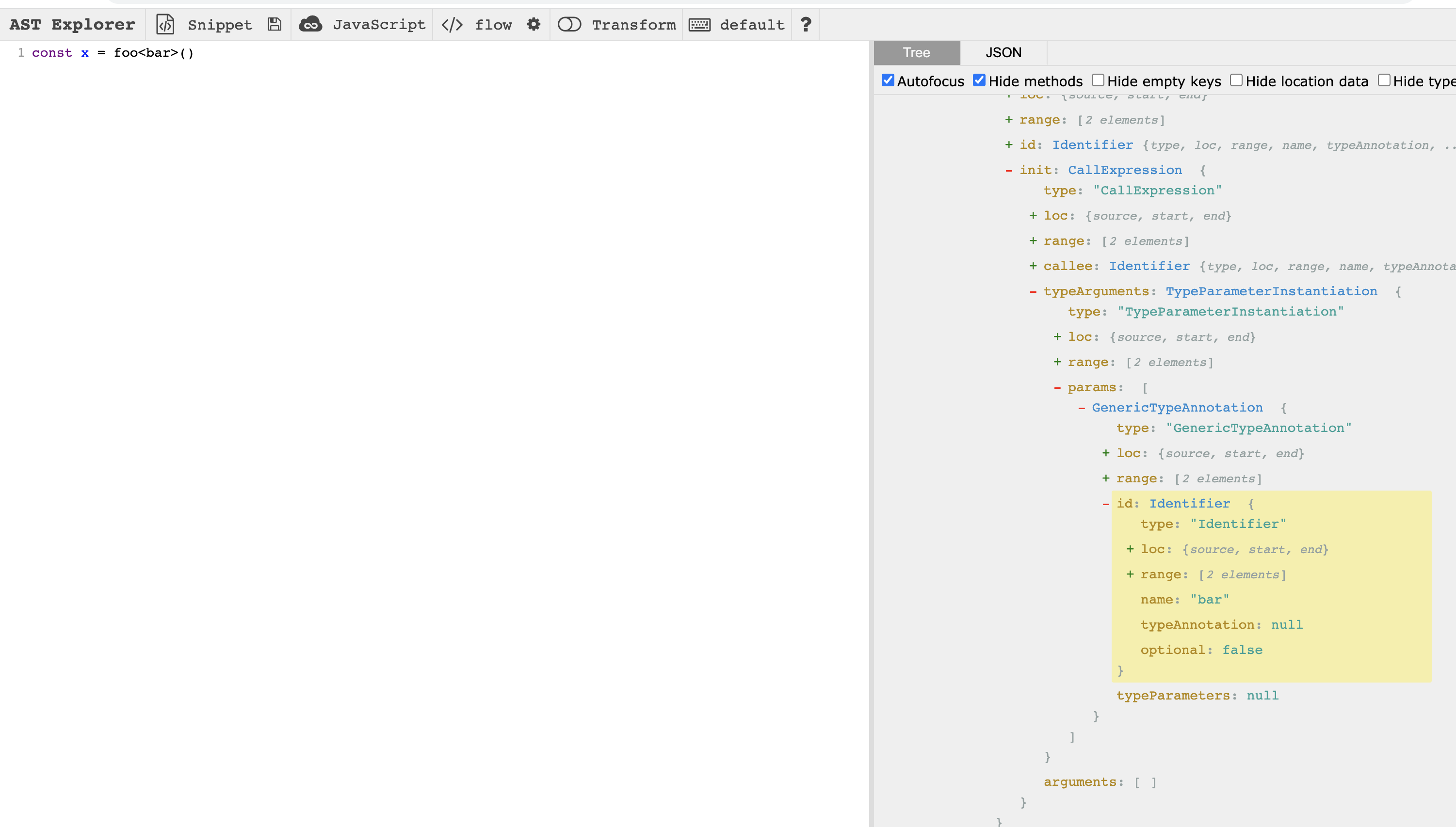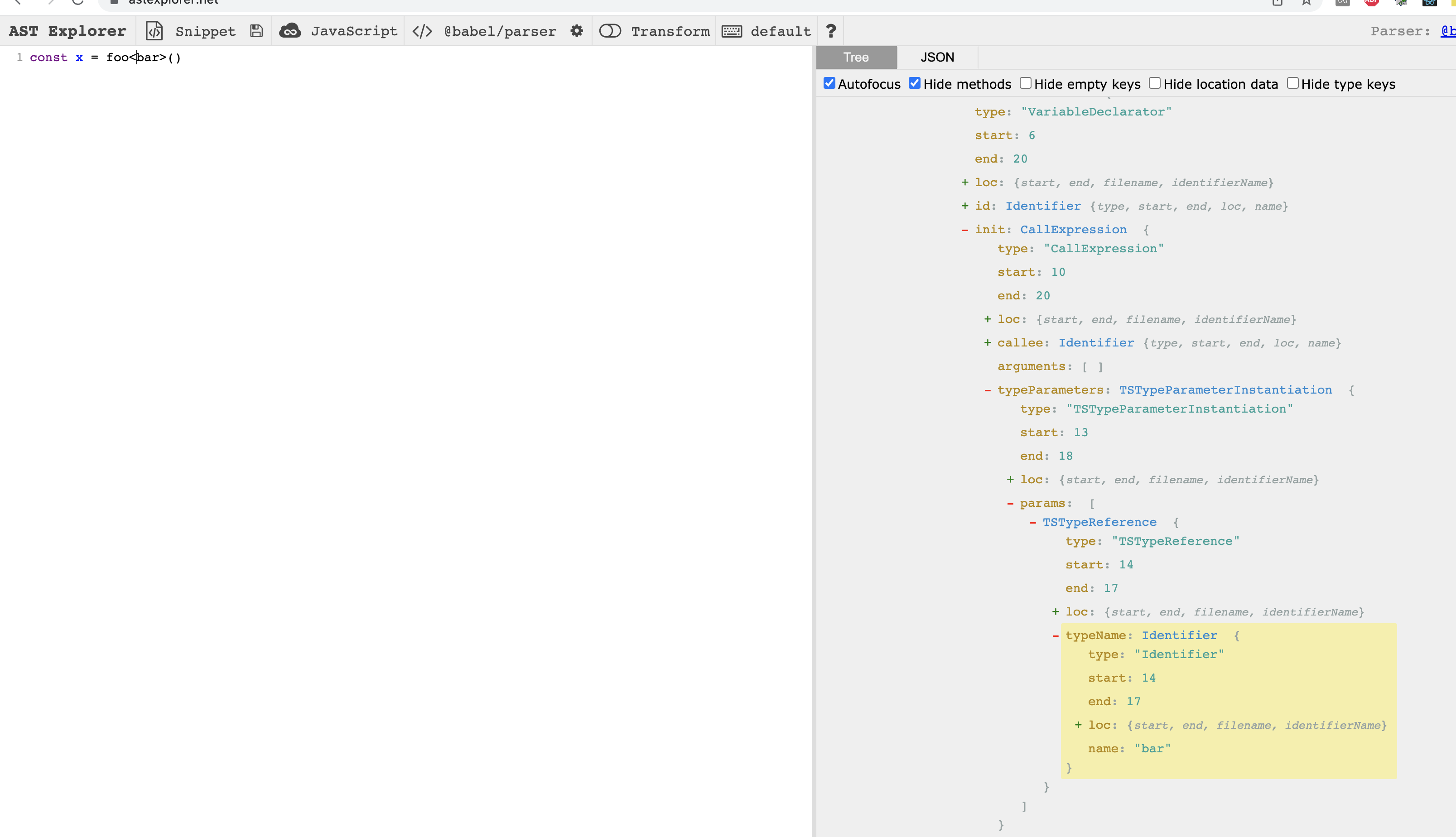 Screenshots of these fields in AST Explorer: