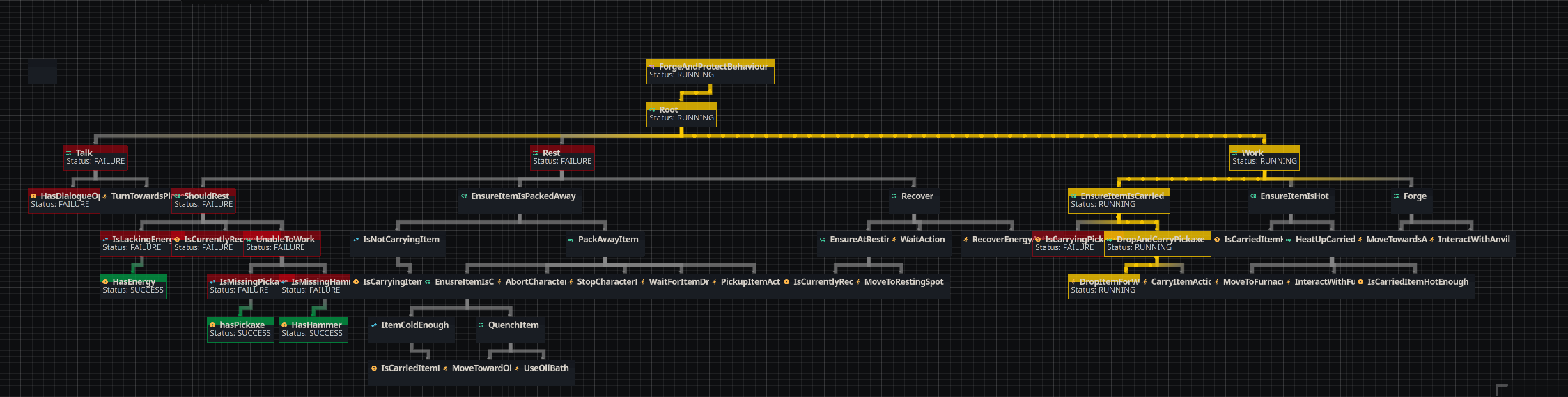 I tested this change now in my game and it works quite nicely, apart from some smaller hickups. For larger trees, it becomes a bit difficult to follow what is going on, perhaps there is a way to better position the nodes to the space is better utilised?