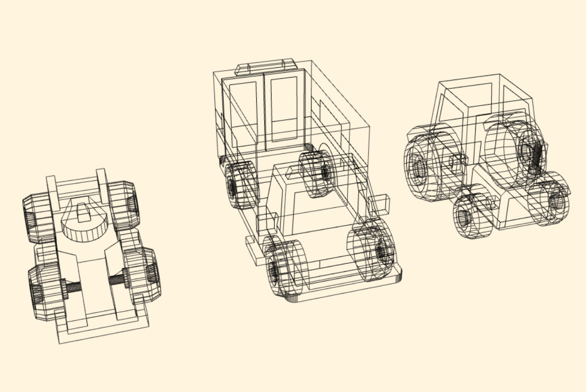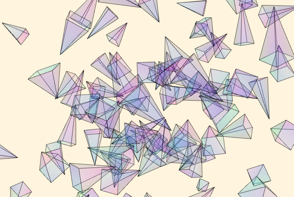 )Somewhat minimalistic demos of using MeshEdgesGeometry on a cube, on a group of pyramids and on GLTF models. Click on an image to run it live: