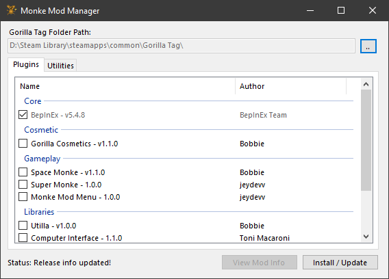 This program will install custom mods into Gorilla Tag automatically, and can be re-run in order to update the mods