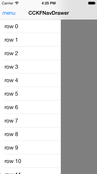 CCKFNavDrawer is a custom navigationController implementing sliding menu on IOS, which aims to provide Android Navigation Drawer for developers to make it on IOS.