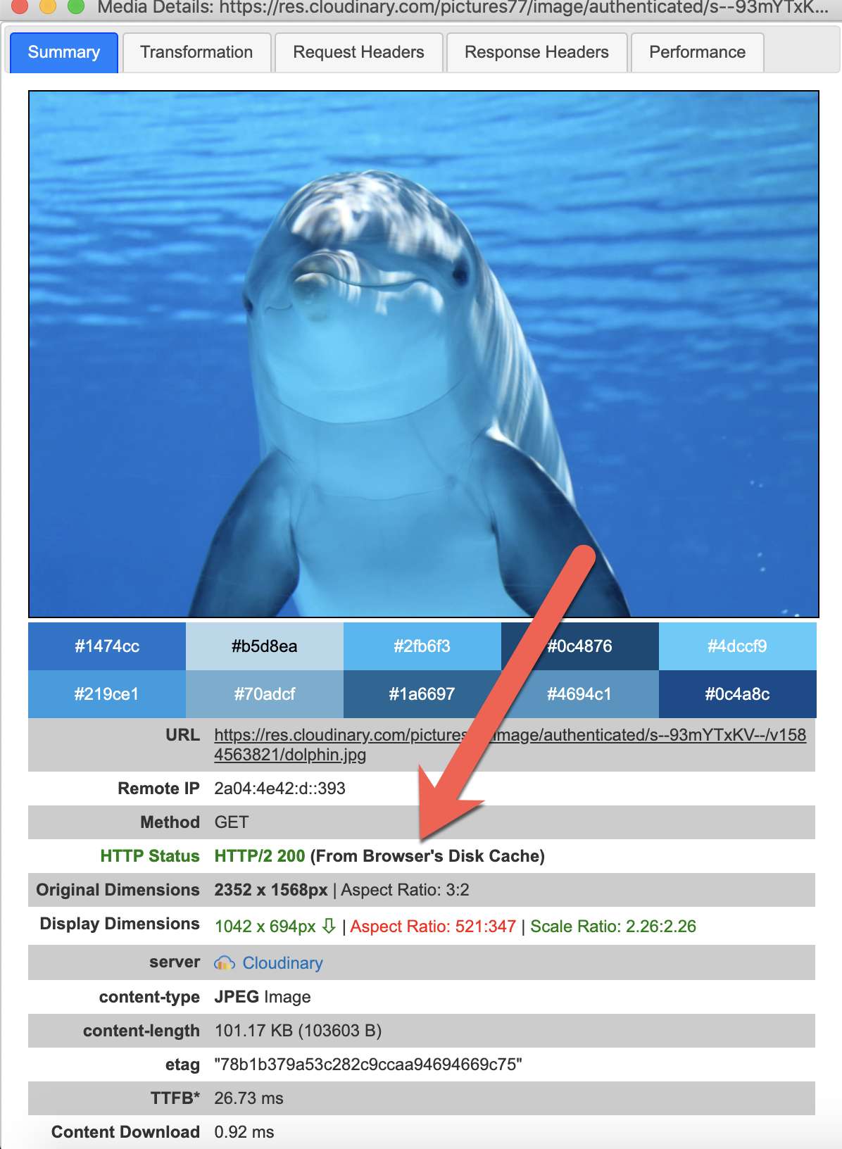 You can use the Cloudinary Debugger Chrome Extension to detect browser caching.