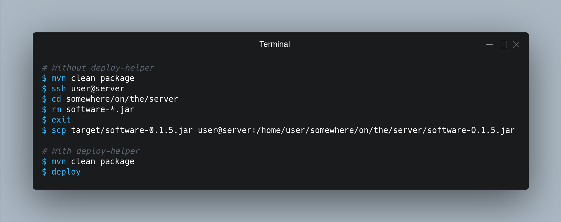alias deploy='java --enable-preview -jar /opt/deploy-helper/deploy-helper-VERSION.jar'