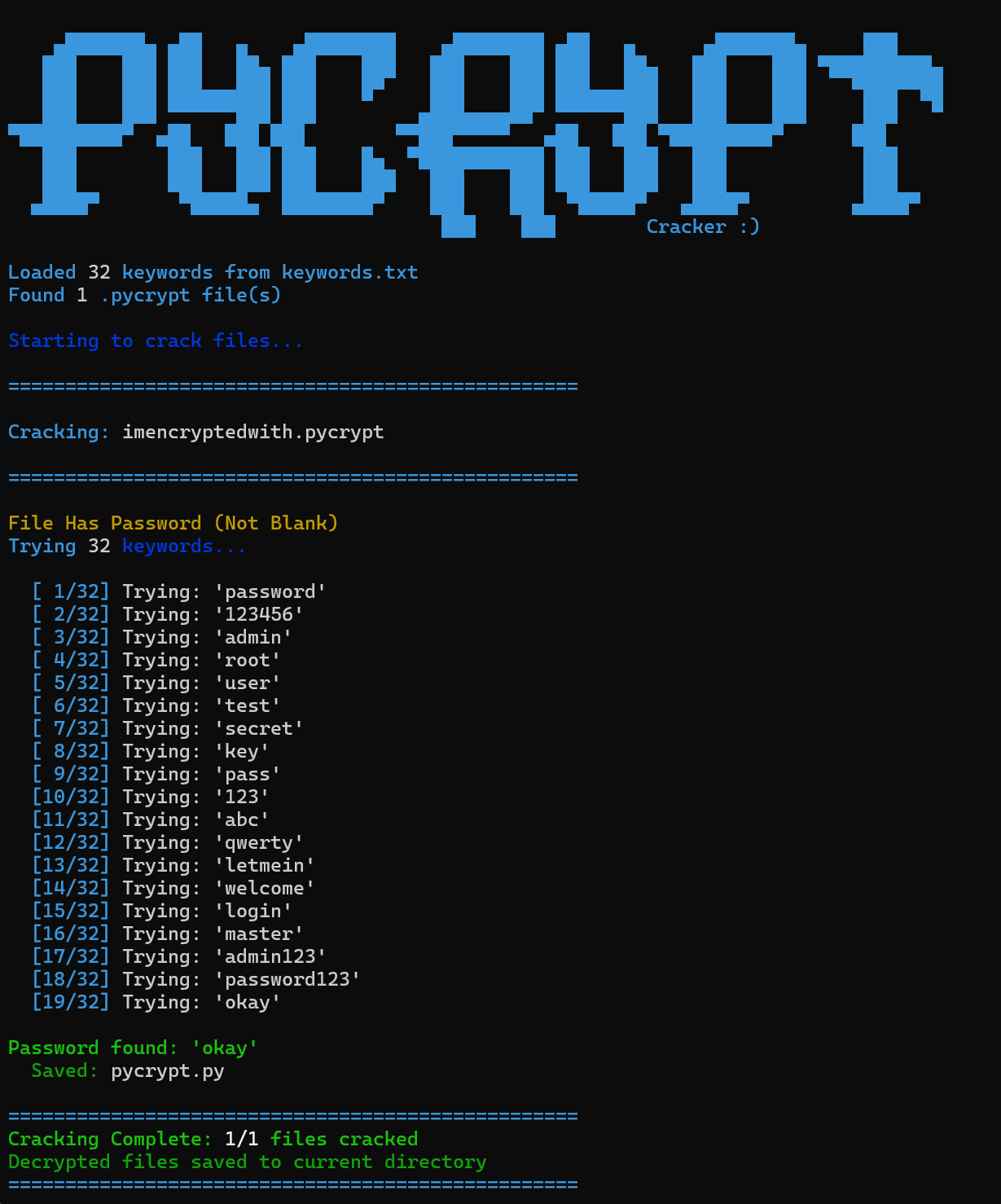 - "it was made in a day twin if I really wanted to make an encryptor I would probably spend more than that it was a quick project and it does matter what the password is because a bruteforce is gonna find "okay" so ez"