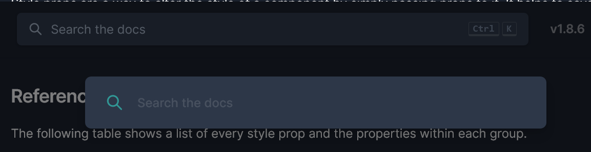 The search bar for the documentation implies it is an input field but is actually a button. Clicking it opens a functioning, floating input field slightly below it. This is not expected behavior and is technically wrong from a UX perspective. I wouldn't ordinarily mention that, but given that this is for a UI library catered to UI developers, it kind of feels warranted.