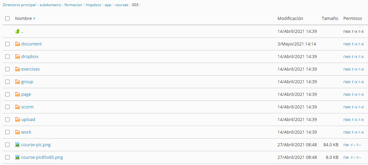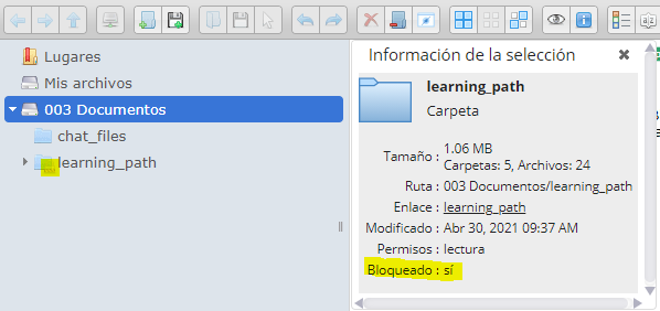 Buenas. Siento infinitamente abrir otro error, pero no he encontrado información sobre esto en ningún lado. Un cliente nos ha llamado diciendo que no pueden ver las lecciones (ver foto 1). Echando un vistazo desde 'Ver servidor' al insertar una imagen hemos visto que learning_path está bloqueado (ver foto 2). Según él, algunas lecciones se ven y otras no, pero yo no visualizo ninguna, lo que me lleva a pensar que antes se visualizaban y han tocado algo. En resumen: learning_path está bloqueado y no sé como desbloquearlo. Revisando los permisos desde el gestor de archivos del hosting está todo en orden (ver foto 4 y 5)
