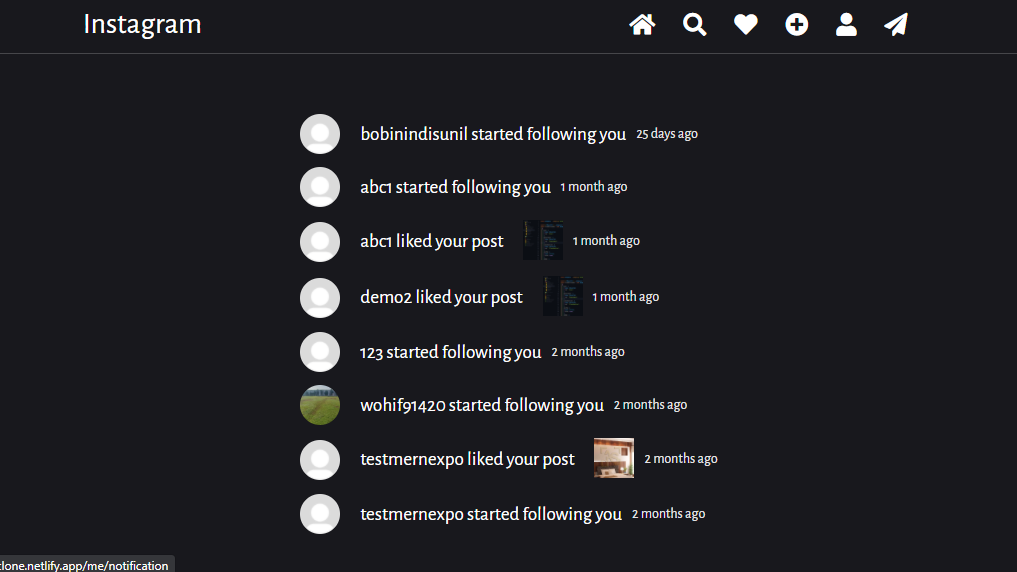 Instagram-react Backend Instagram Backend Feautures jwt authentication create,delete post upload,update.delete profile pic follow/unfollow,follow-request,accept-request comment,reply,like-comment,like-comment-reply save post to bookmark Notification Chat Panel Chat Profile Post