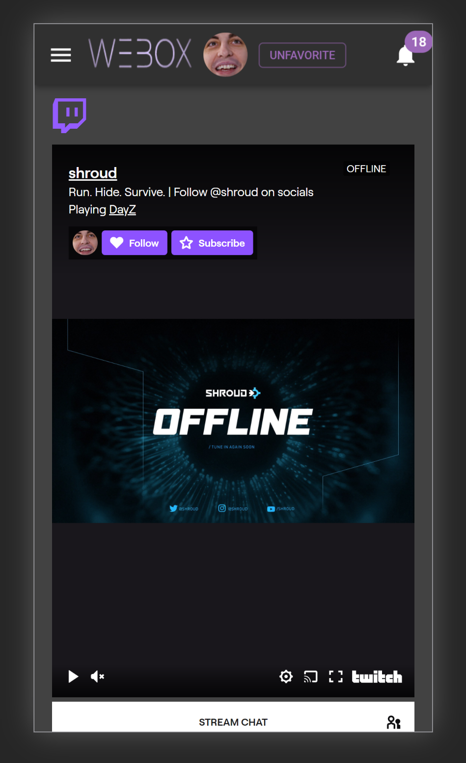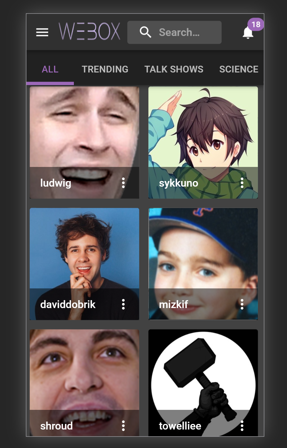 Webox is a mobile app that's a hub for entertainment where you can watch and follow the top creators from Twitch and their social media.
