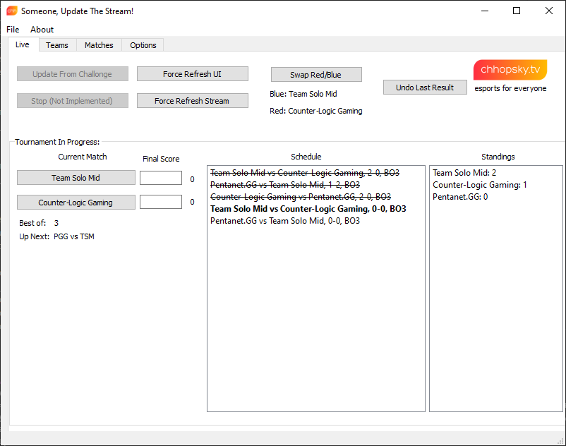 A tournament scores/schedule/standings management tool for esports tournament broadcasts.