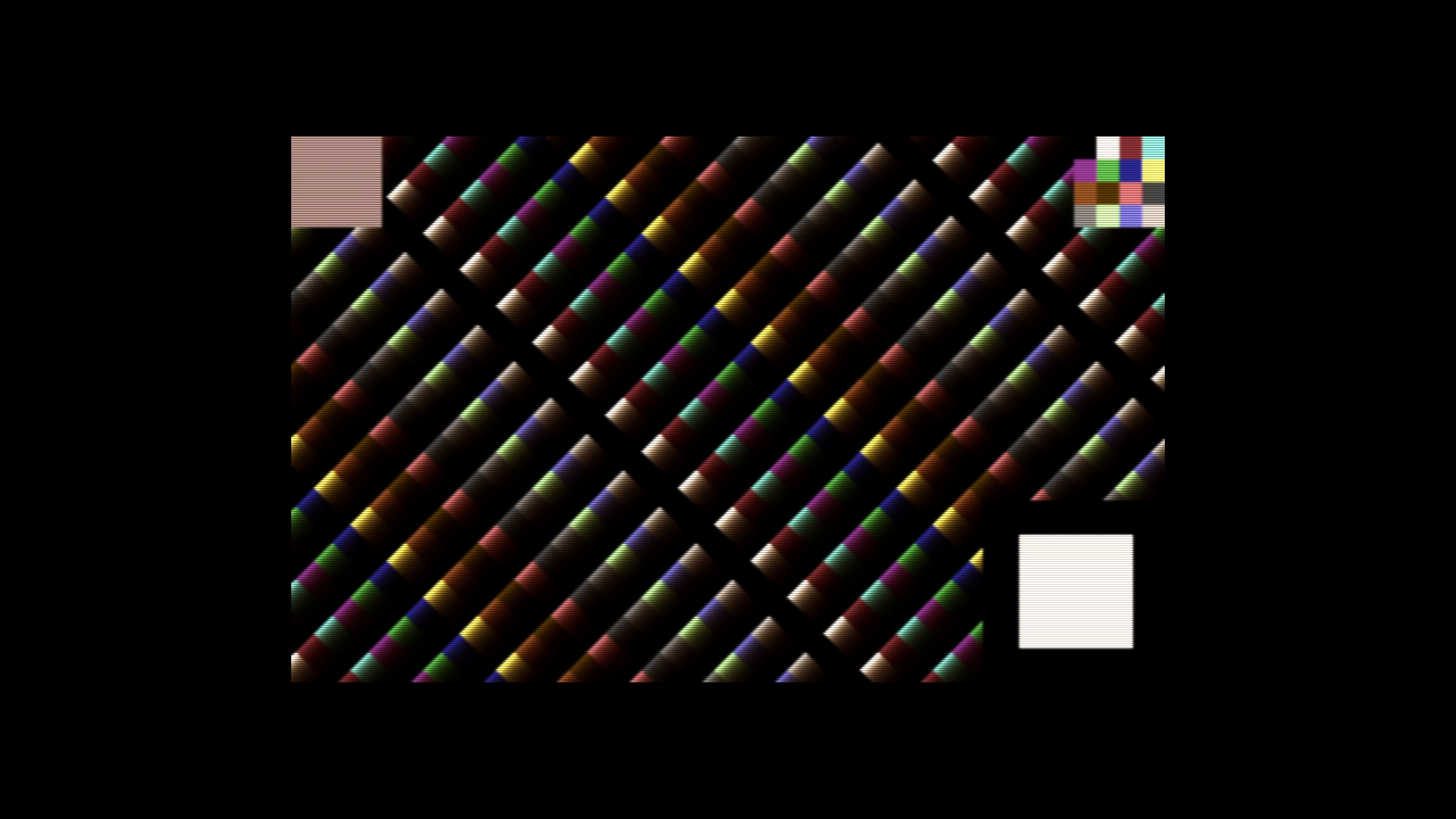 Here's another one from the ntsc_green_monitor scenario. You see how the frame progress counter on the bottom left and the central diagonal moving lines both left behind afterglow trails:
