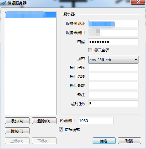 可以看到需要连接ss的ip地址,密码,端口,和加密方式。