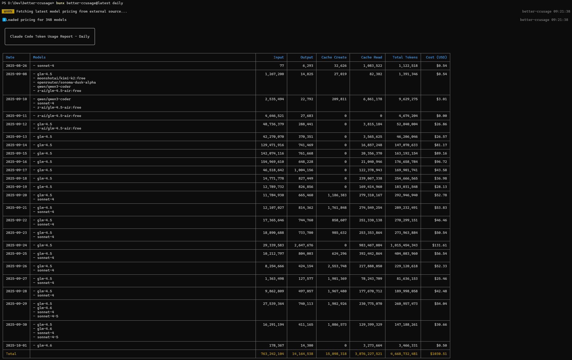 bunx better-ccusage