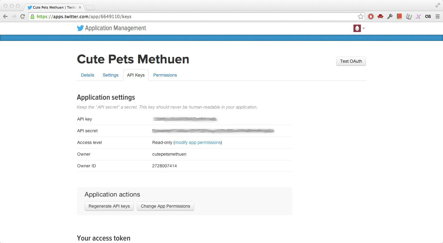 2) Go back to your Twitter Developers page. In your .env file, type: