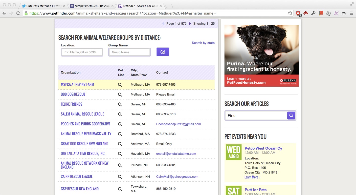 6) On the right sidebar of the PetFinder page, search for your local shelter.