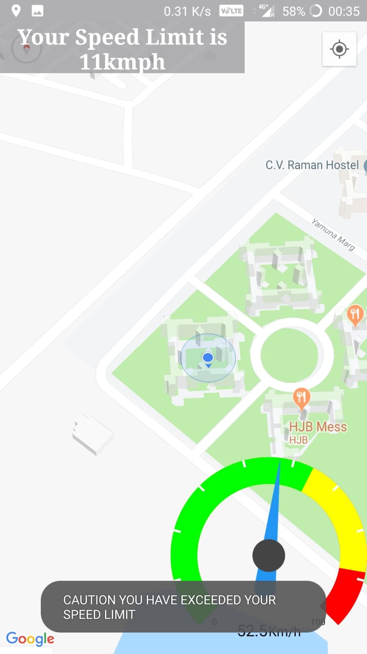 • The app uses the Google Map's APIs and the Haversines Algorithm to track speed along with sending alerts