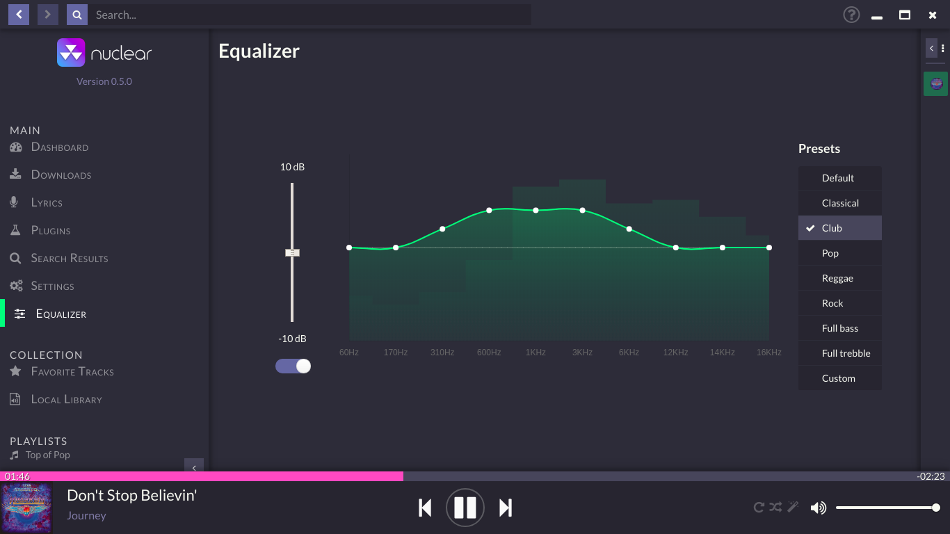 | Flatpak | https://flathub.org/apps/details/org.js.nuclear.Nuclear | nukeop | flatpak install flathub org.js.nuclear.Nuclear |