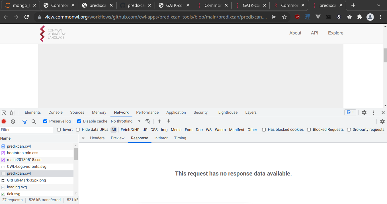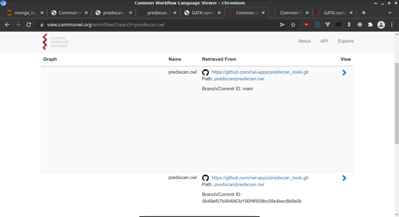 The only issues found so far were related to the graph image not being displayed. I found this one that did not show on both local latest version, and on view.commonwl.org: However, this other one is showing correctly on view.commonwl.org, but not on my notebook: |