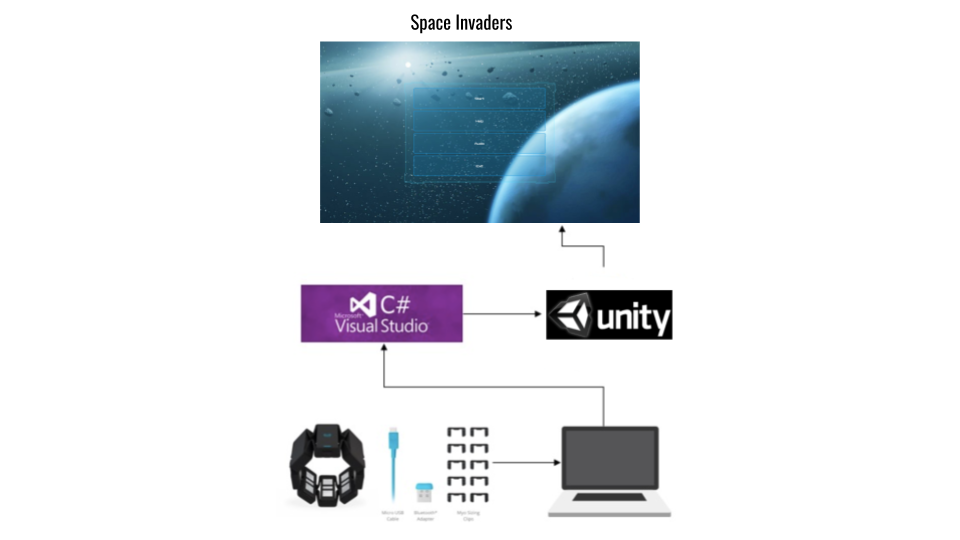 The hardware we chose for our application is the Myo Armband. We choose to use this as it is a top of the range gesture control armband. The myo armband was also available to us in the college, so that made it even more attractive to use.