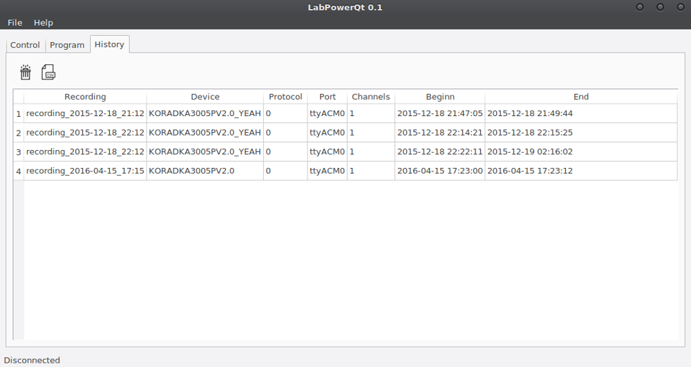 LabPowerQt is an application to control laboratory power supplies and to record and visualize the data.
