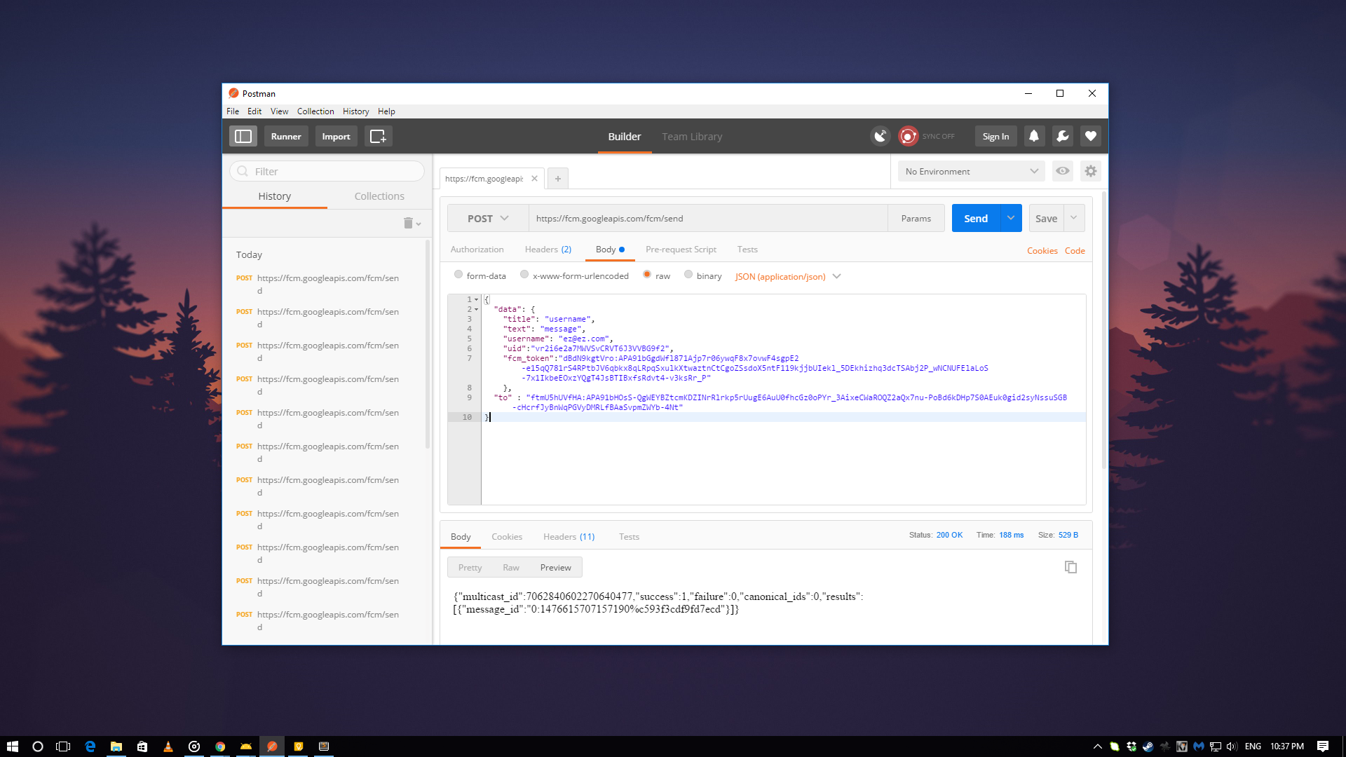 Now, we can hit the same api using any rest client on our device with custom data object (containing extra information that you would like to send with you push notification). I have used okhttp for managing the api calls, but feel free to use any rest client as per your requirements.
