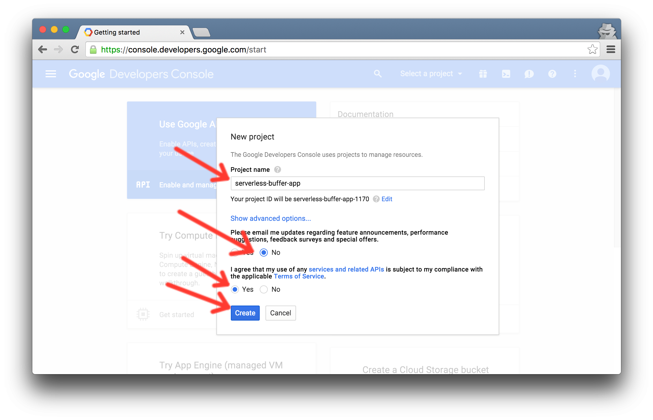 - Configure OAuth. Add all the domains from which your app will be hosted (e.g. http://localhost:8080 and http://tweet.crc.io). Save the client ID you get for later.