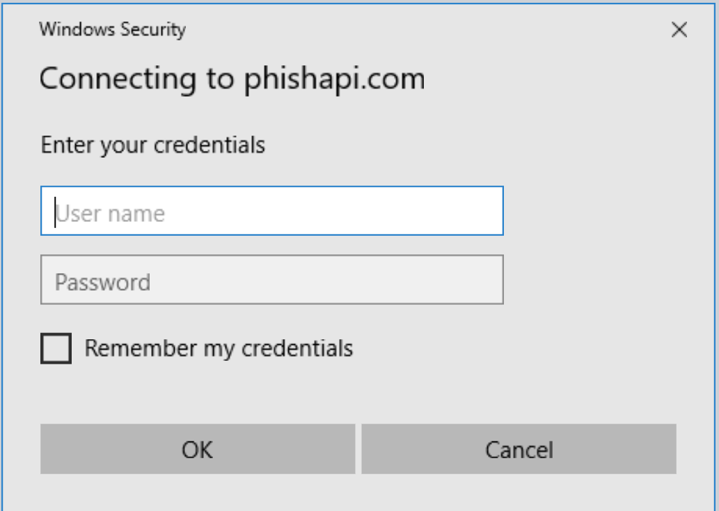 Figure 3: If "Auth Prompt" is Selected in Payload Options, Display Basic Auth Prompt to User for Credential Capturing (like Phishery)