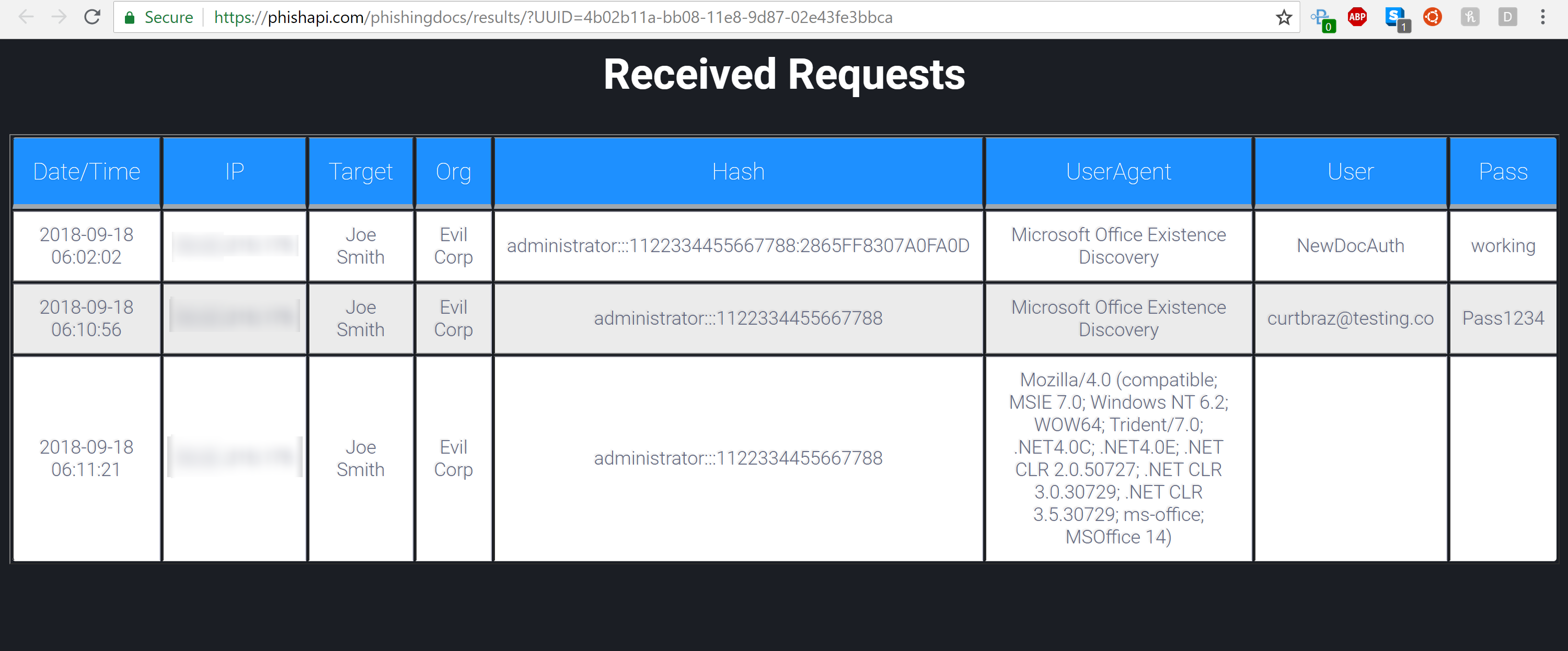 Rapid & Easy Deployment API for Phishing During Pentest Engagements. Output to MySQL/Web Table & Slack Bot. Supports BEEF Hooking & HaveIBeenPwned!