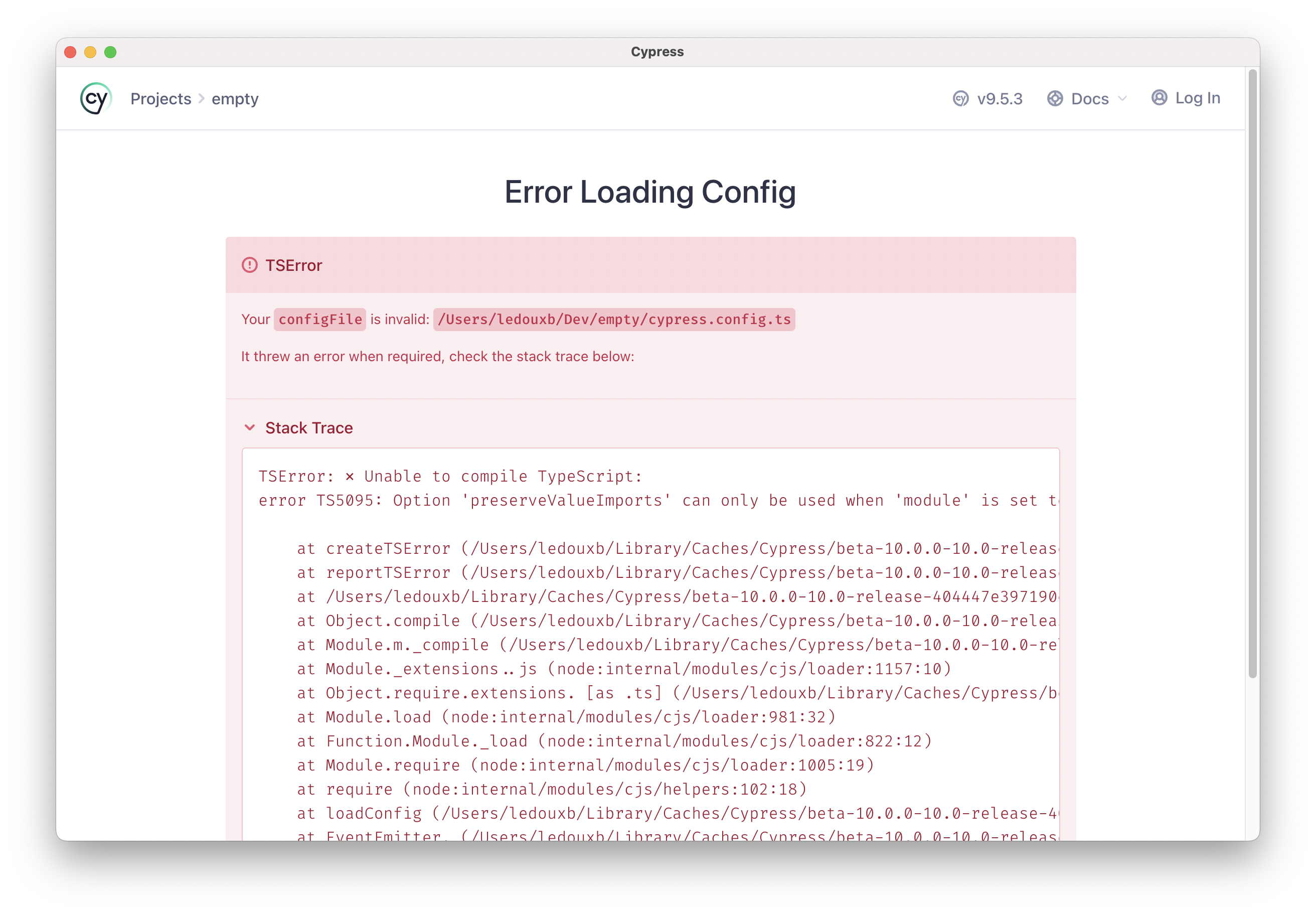 We used to get the following error when running cypress against