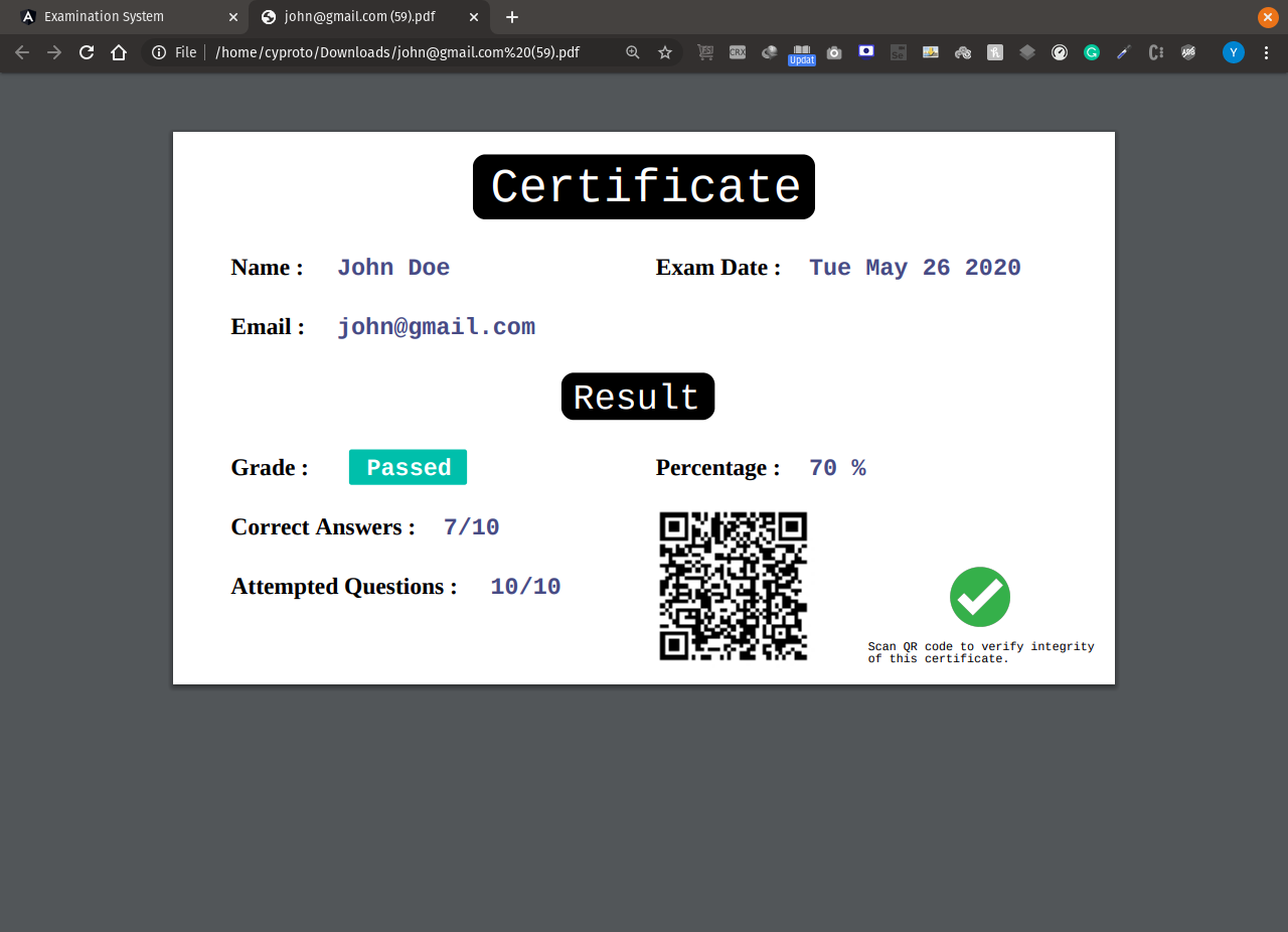 - Generation of certificates with QR code to verify integrity of the result.