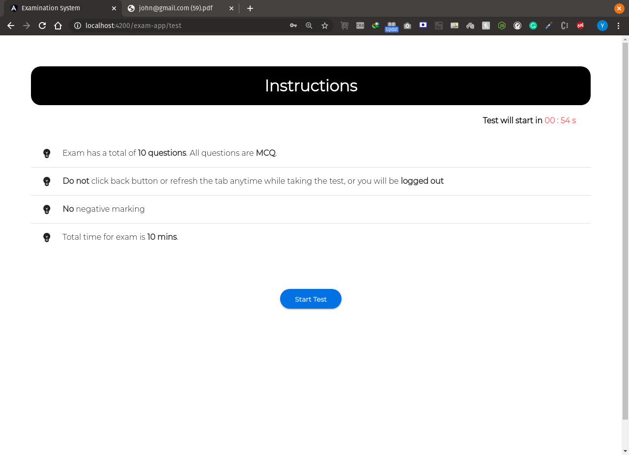 - After submitting test, the responses are stored in firebase as welll as it gives a call to node api