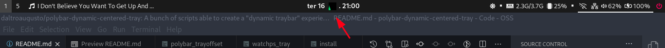 - Agora que o módulo está exatamente na posição em que a tray é invocada pela Polybar, devemos, manualmente, configurar hooks para cada programa que vá usar a tray. Suponhamos que o programa