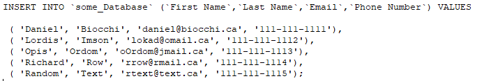 INSERT INTO 'table_name'(column_1,column_2,...) VALUES (value_1,value_2,...);