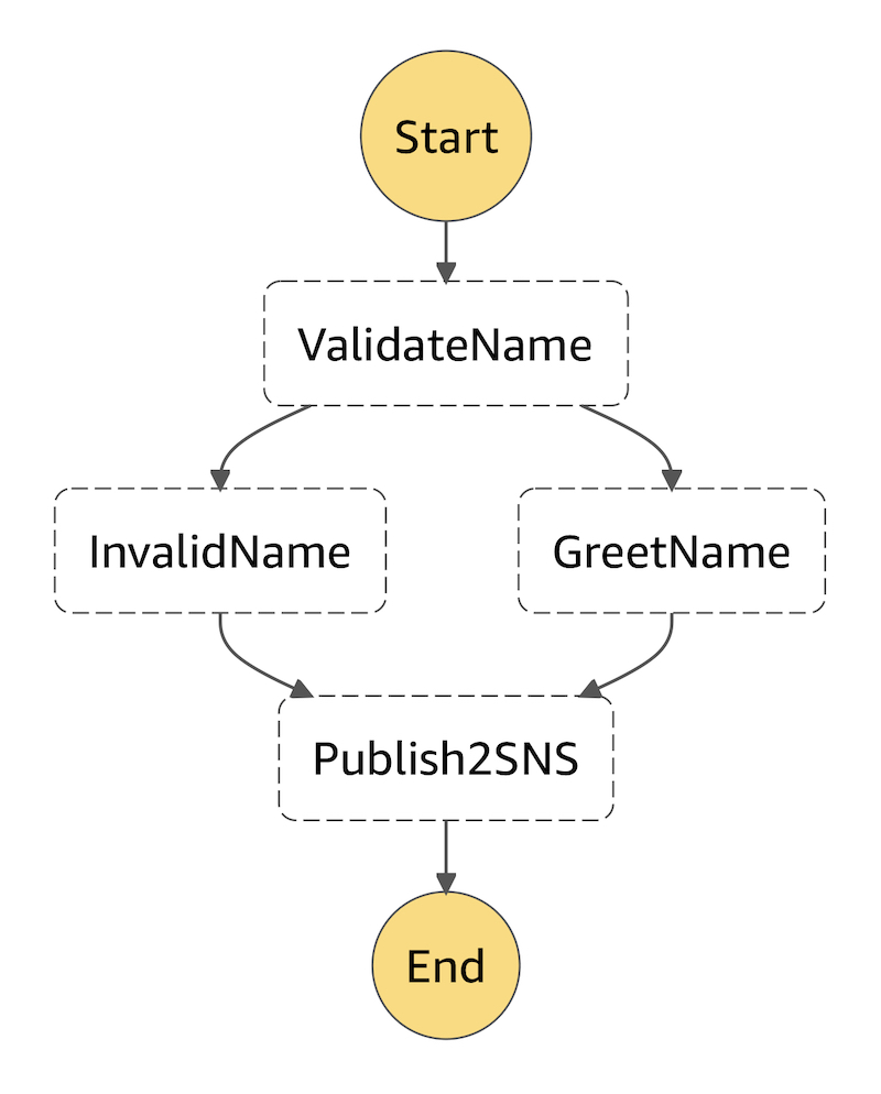 Sample AWS Step Functions application to get practice with SAM templates, Lambda functions, SNS topics and SQS queues.