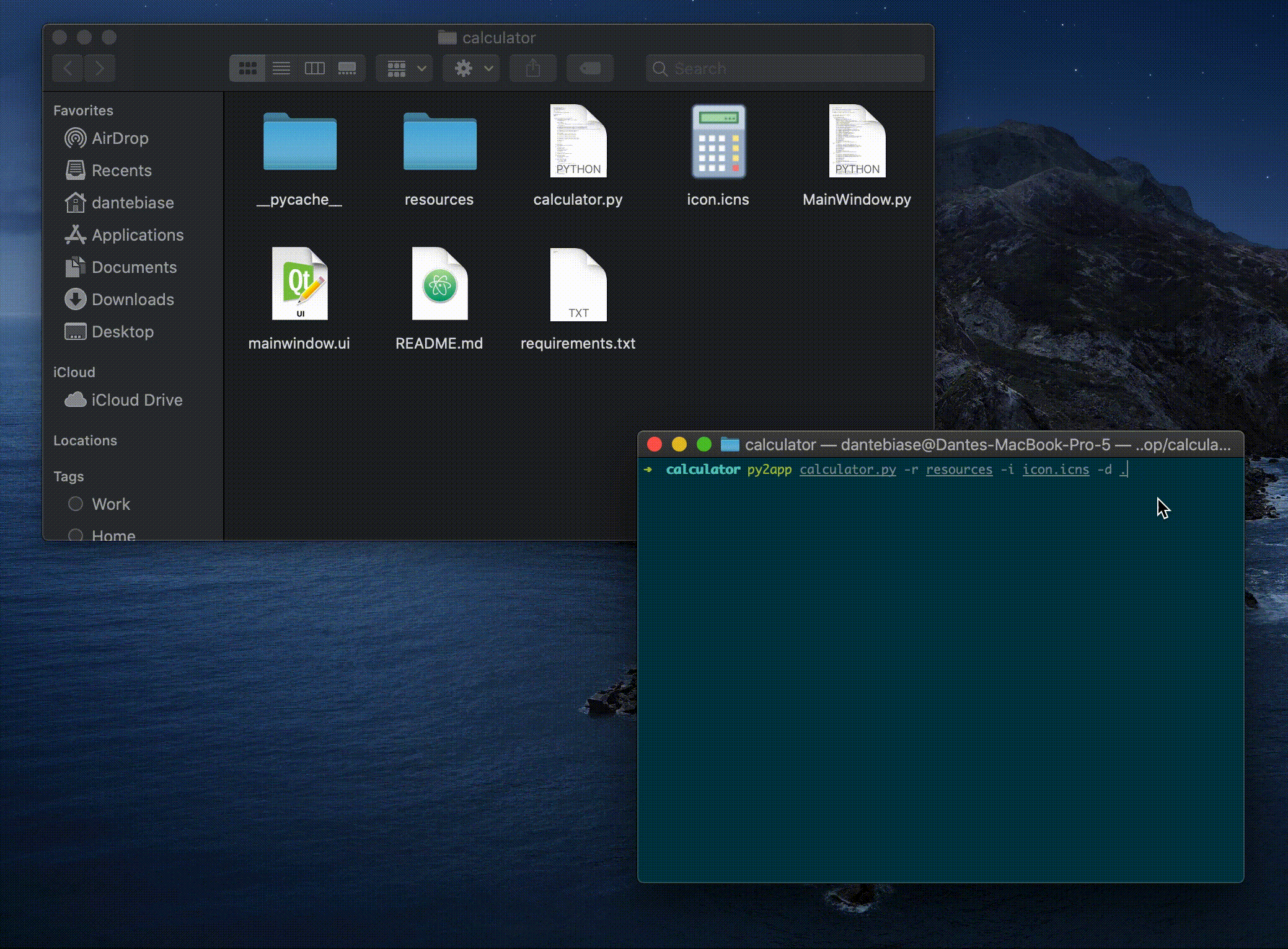 Manual | $ git clone https://github.com/dante-biase/py2app.git $ cd py2app $ pip3 install -r requirements.txt $ chmod +x py2app.py |