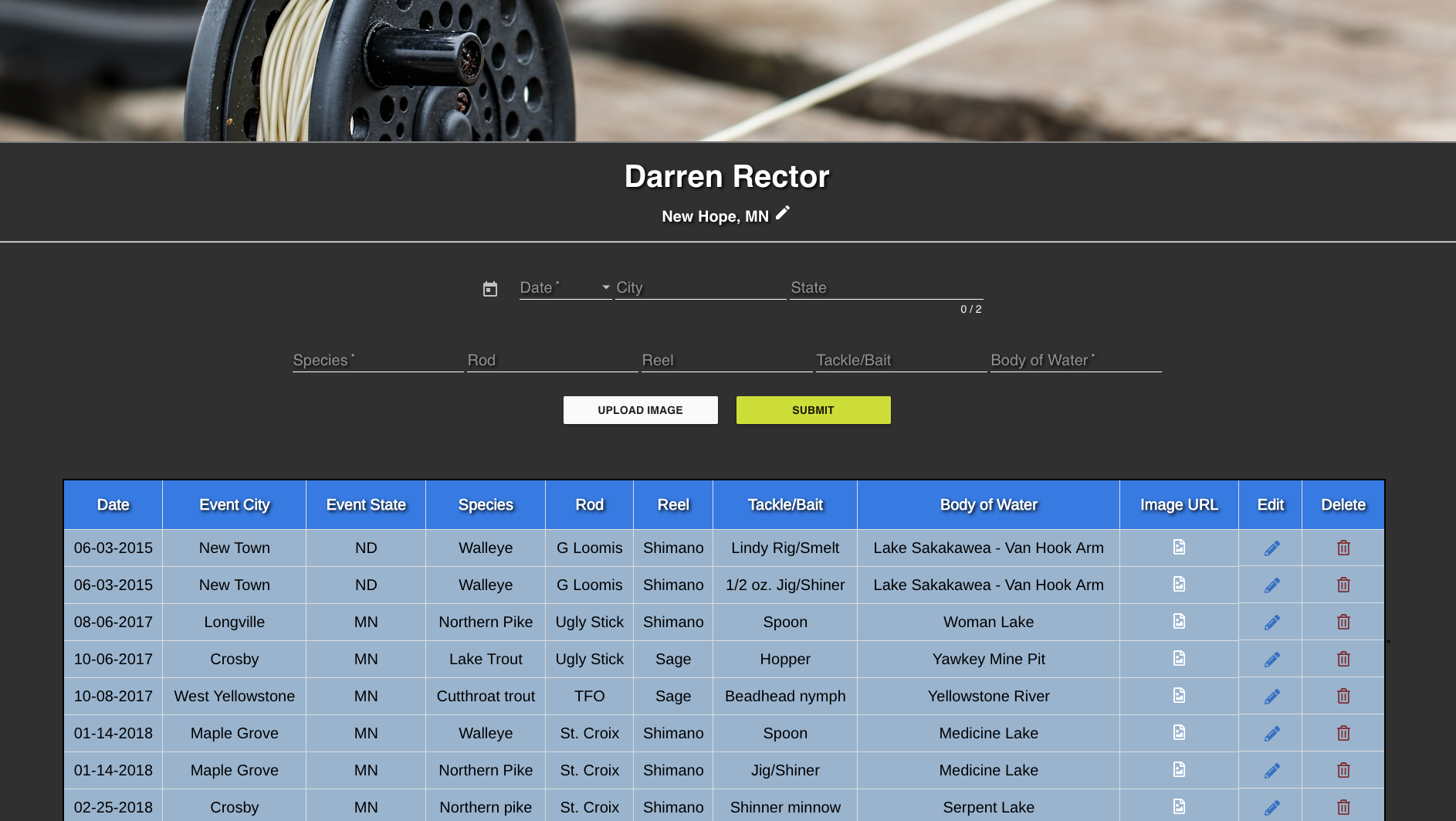 iTrack is a web application that gives a user the ability to track fishing statistics including gear used, fish caught and location of catch.