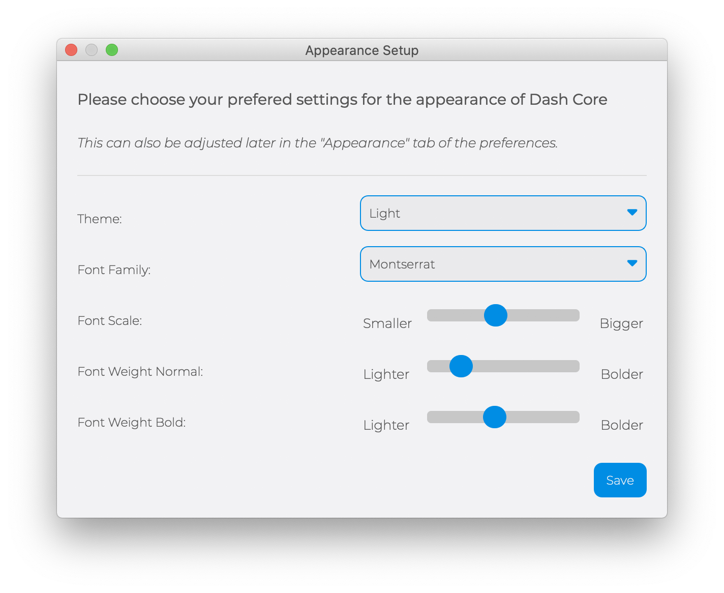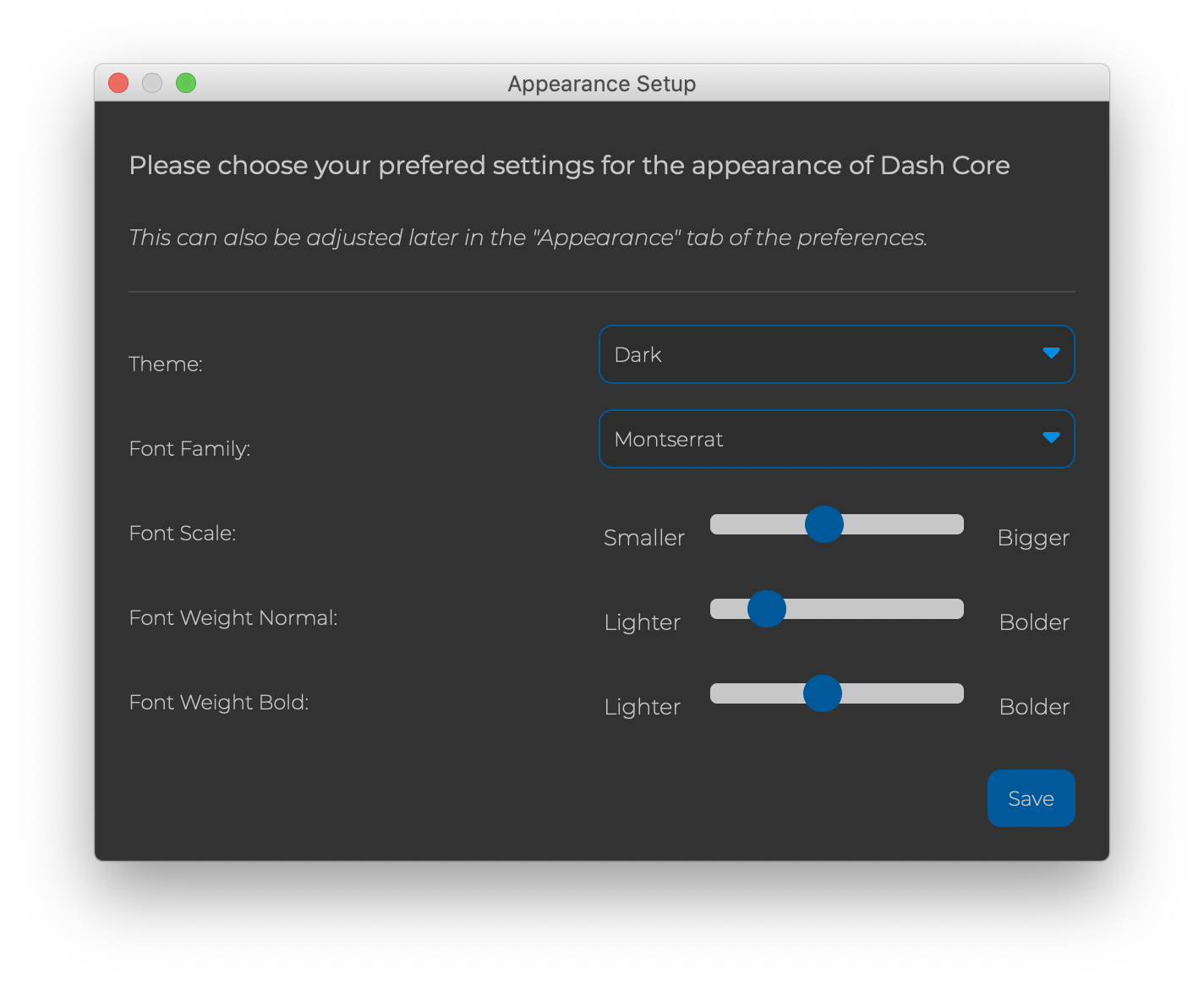 Ready for review! Like discussed in #3578 this PR also introduces a "initial appearance setup dialog" now.. basically just to let user know it's there and to give them the opportunity to set their preferred defaults. It will only pop up the first time a user runs any dash core version with this PR included.