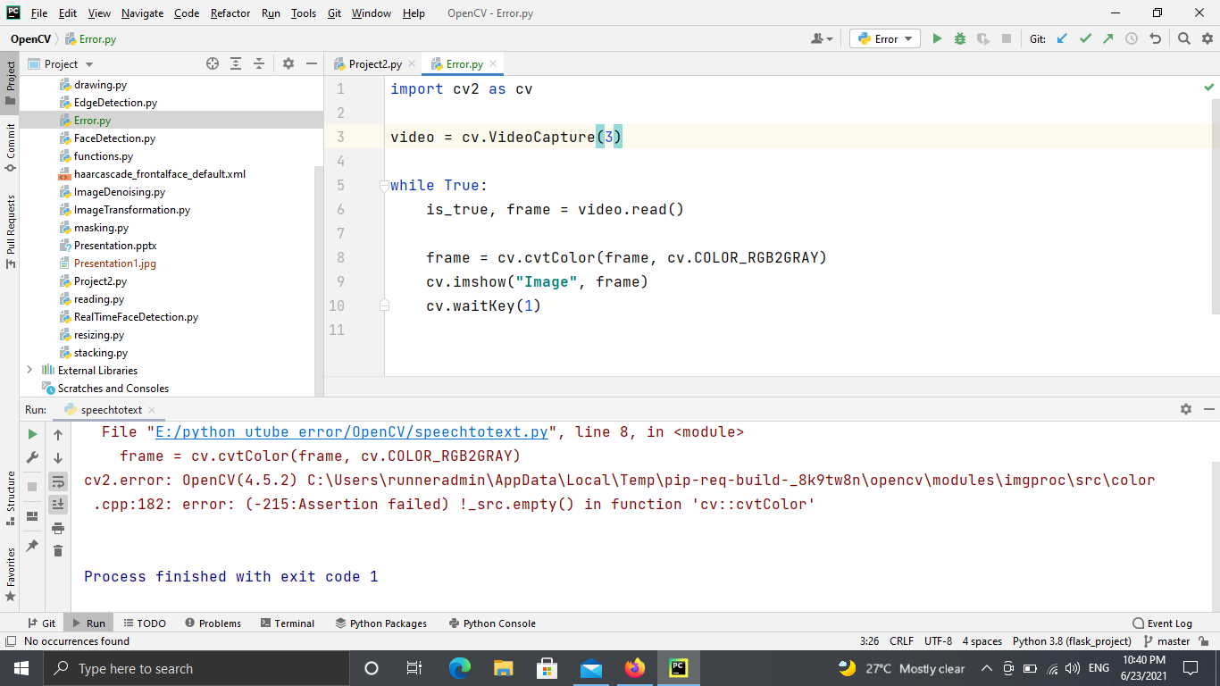 error: (-215:Assertion failed) !_src.empty() in function 'cv::cvtColor #7