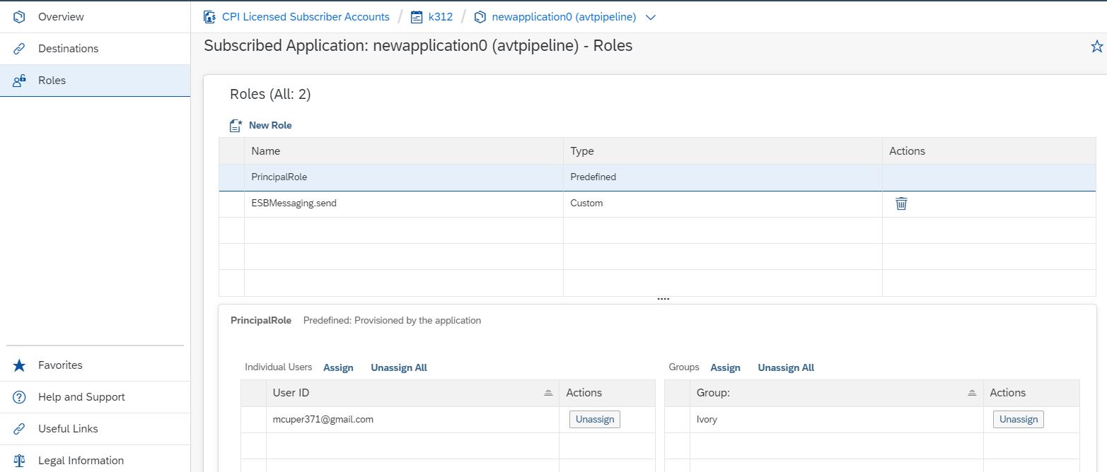In the subaccount go to subscription and select the web app in the list. click on Roles on the left panel. create a Role ESBMessaging.send to the web application in the sub account. assign thiis role to the user mcuper371@gmail.com