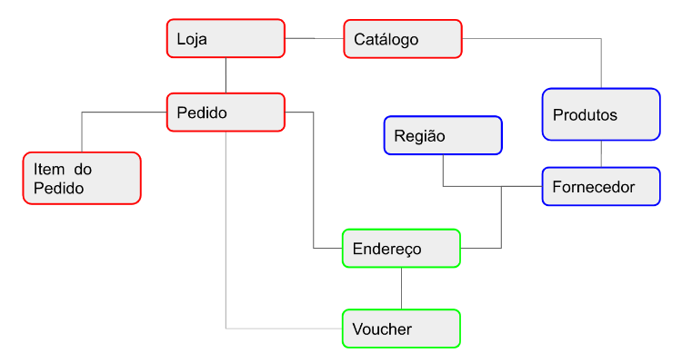 - loja: gestão do pedido: apresenta o catálogo; realiza pedido; reserva um voucher