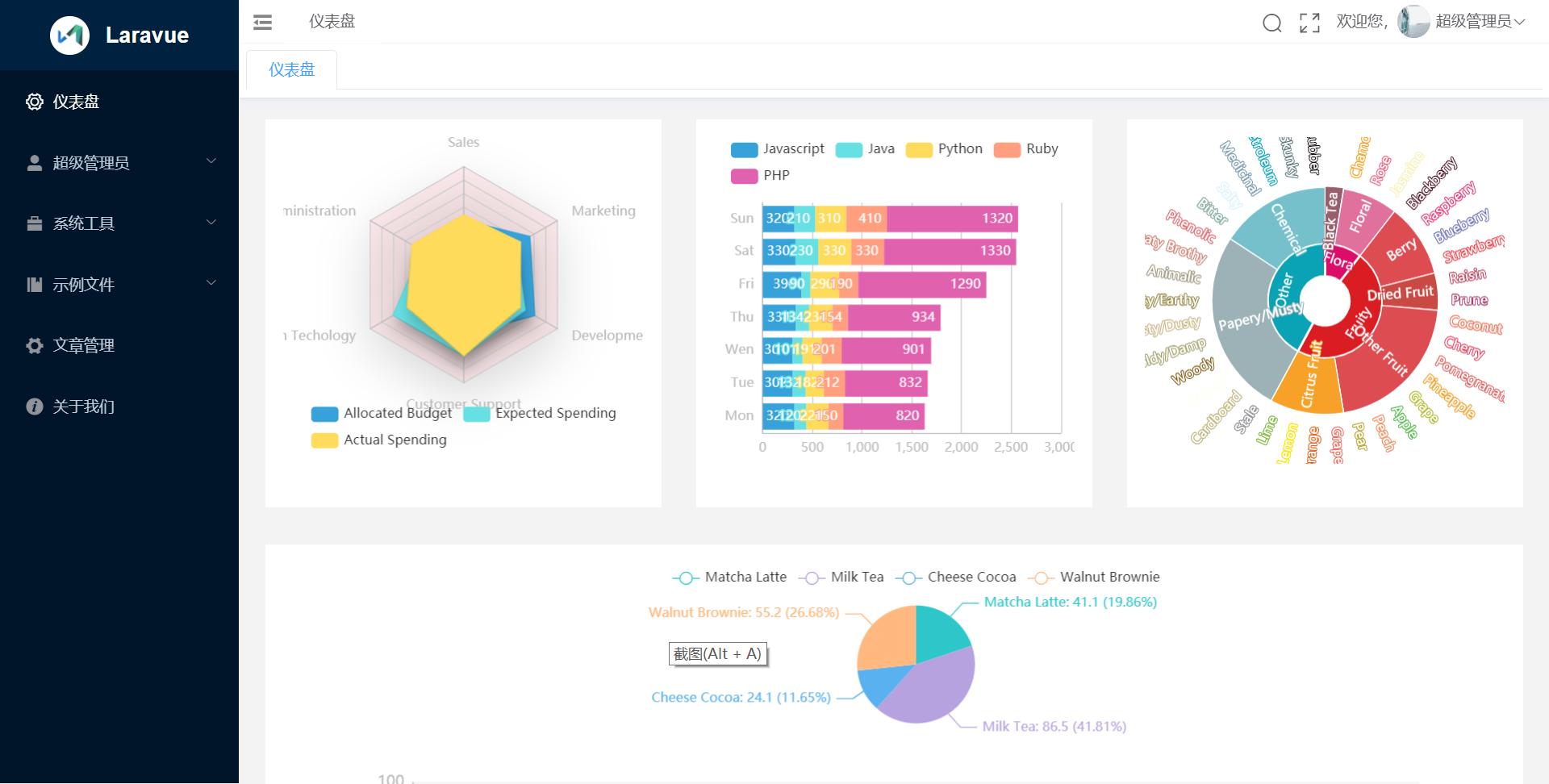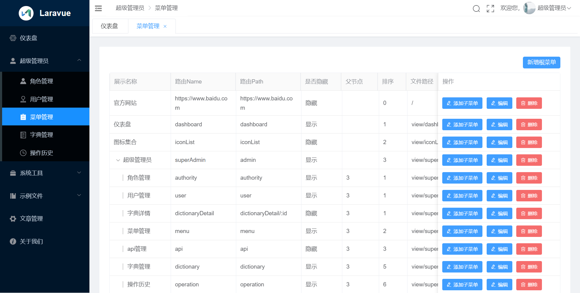 Laravel+vue+admin 实现了JWT鉴权,动态路由菜单管理,角色管理,权限管理,数据字典,一键生成一个模块代码(包括crud代码,包括VUE+JS代码),RESTful API风格,Laravel ORM,更多功能正在实现中, 欢迎各位PR和issue,走过路过不要忘记点个 STAR !
