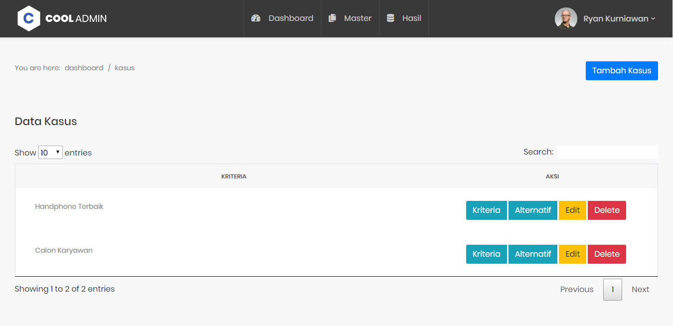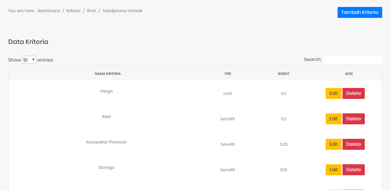 - Kriteria -> Tambah Kriteria