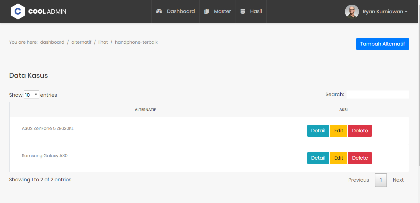 - Alternatif -> Tambah Alternatif