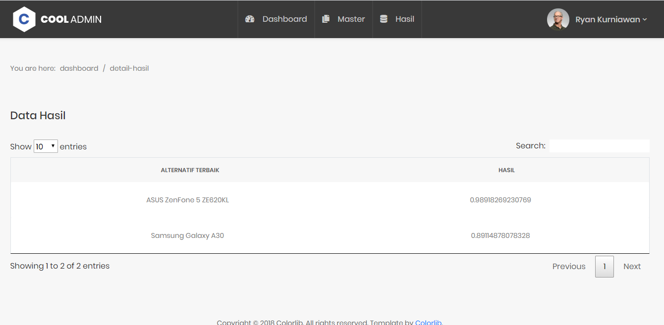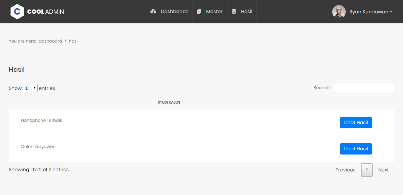 Sistem Pendukung Keputusan ini dapat digunakan untuk berbagai macam studi kasus sesuai kebutuhan. Contohnya seperti seleksi calon karyawan atau rekomendasi handphone untuk dibeli.