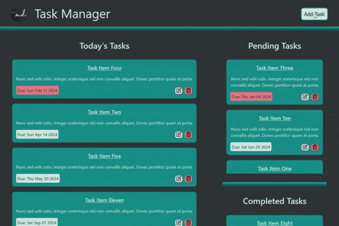 - Drag and drop functionality to move tasks between today, pending, and completed lists