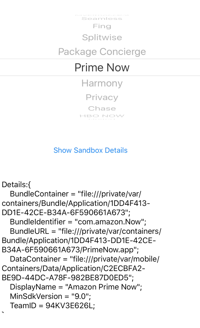 SandBox-Dumper makes use of multiple private libraries to provide exact locations of the application sandbox, application bundle and some other interesting information. It should work on all the latest iOS versions. (Confirmed to be working on jailbroken iOS 14.2 device)