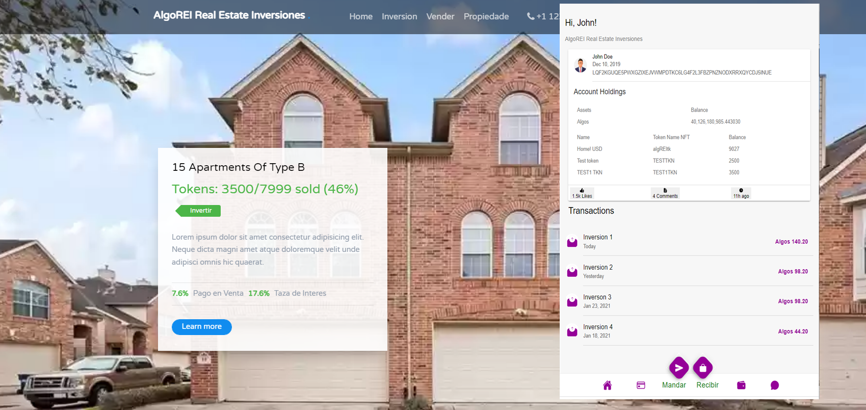 AlgoREI Fracionando NFT en Real ESTATE con esta propuesta estamos tratando de "democratizar" aun mas el concepto de NFT/ASA para permitir que todos los/las personas sepan accesar, crear tokens y tomar ventaja de esta nueva tecnologia y que no solo sea parte exclusiva de grandes entes corporativos fuera del alcance del poder acquisitivo o de entrada de personas que teniendo la iniciativa pero no el capital quieren invertir