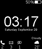 • Weather - temperature (in Celsius) & current condition in text and image form.