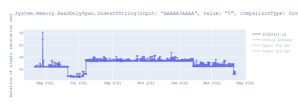 ```#### System.Memory.ReadOnlySpan.IndexOfString(input: "AAAAA5AAAA", value: "5", comparisonType: InvariantCulture)