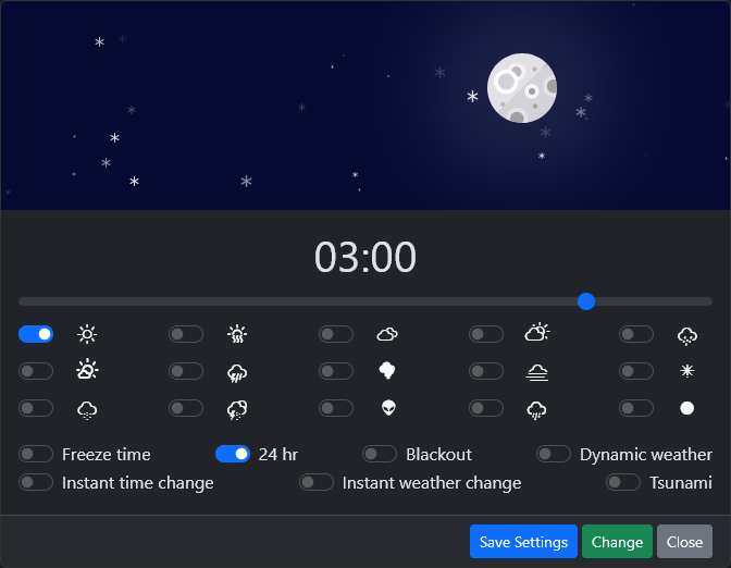 Easytime is a small standalone but useful UI for FiveM server administrators which allows them to manipulate time and weather with a click of a button!
